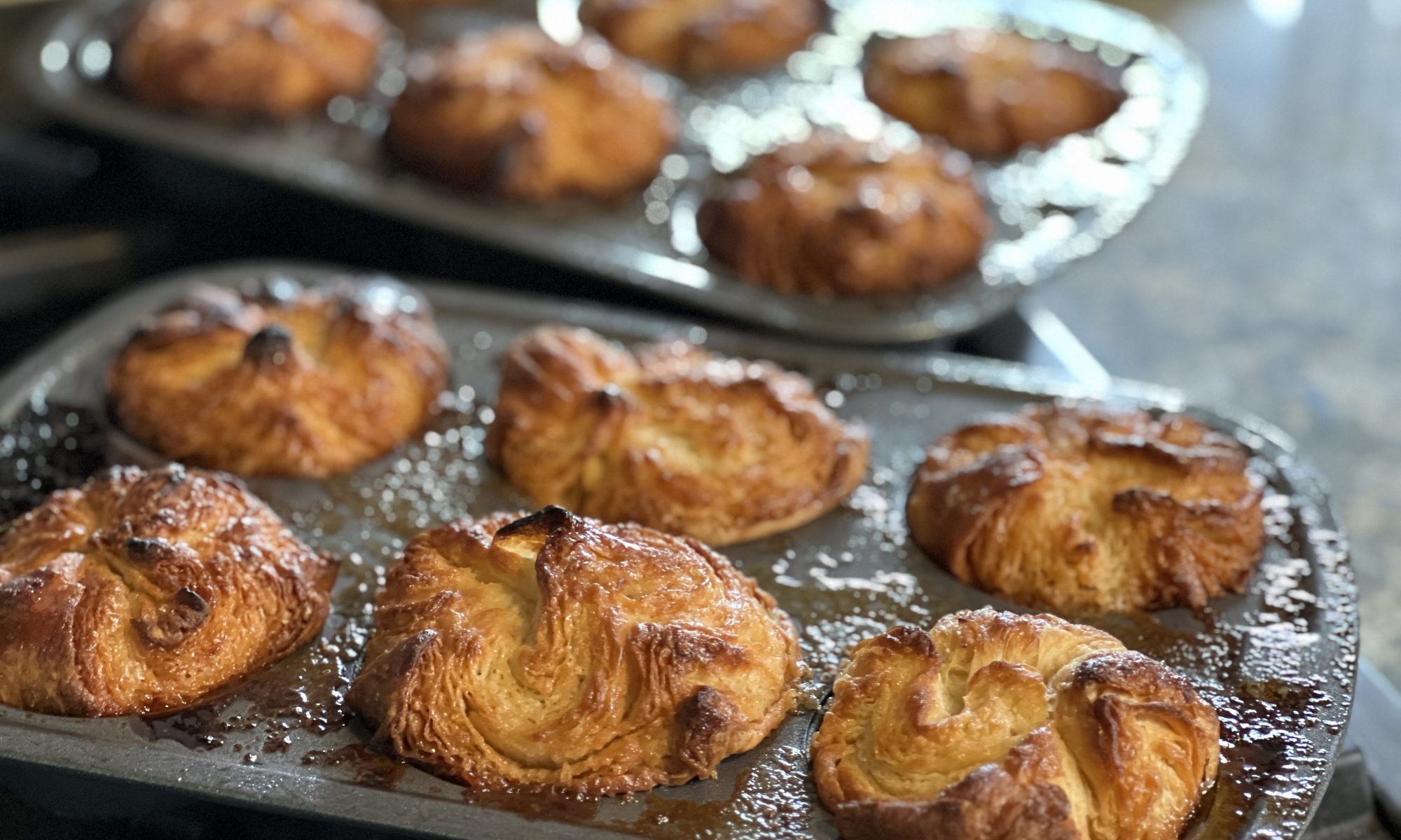 There are two ways to shape kouign amann, either spiral shaped or diamond shaped.